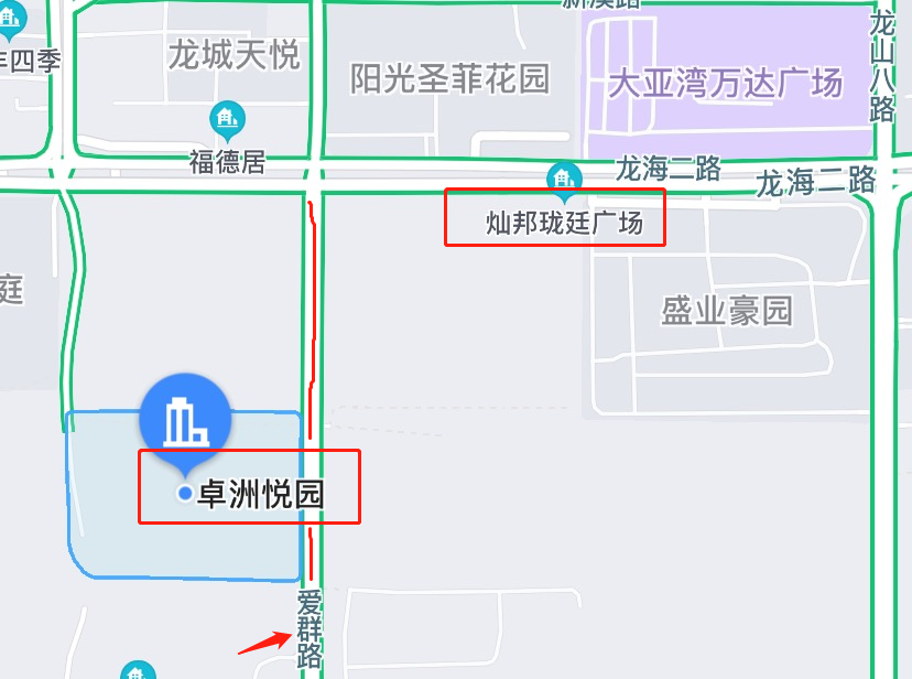 它们就是:灿邦珑廷广场VS卓洲悦园。[size=1.05em]横在两项目中间的这条路就是:爱群路~ [size=1.05em]灿邦珑廷单价为19500元/m,而卓洲悦园单价15000元/m,享受的是跟灿邦珑廷同等的区位配套(紧邻交通大动脉——龙海二路,直达深圳;举步万达广场,北大培文名校加持)。 [size=1.05em] 要说价格差,灿邦珑廷的加分项不少!